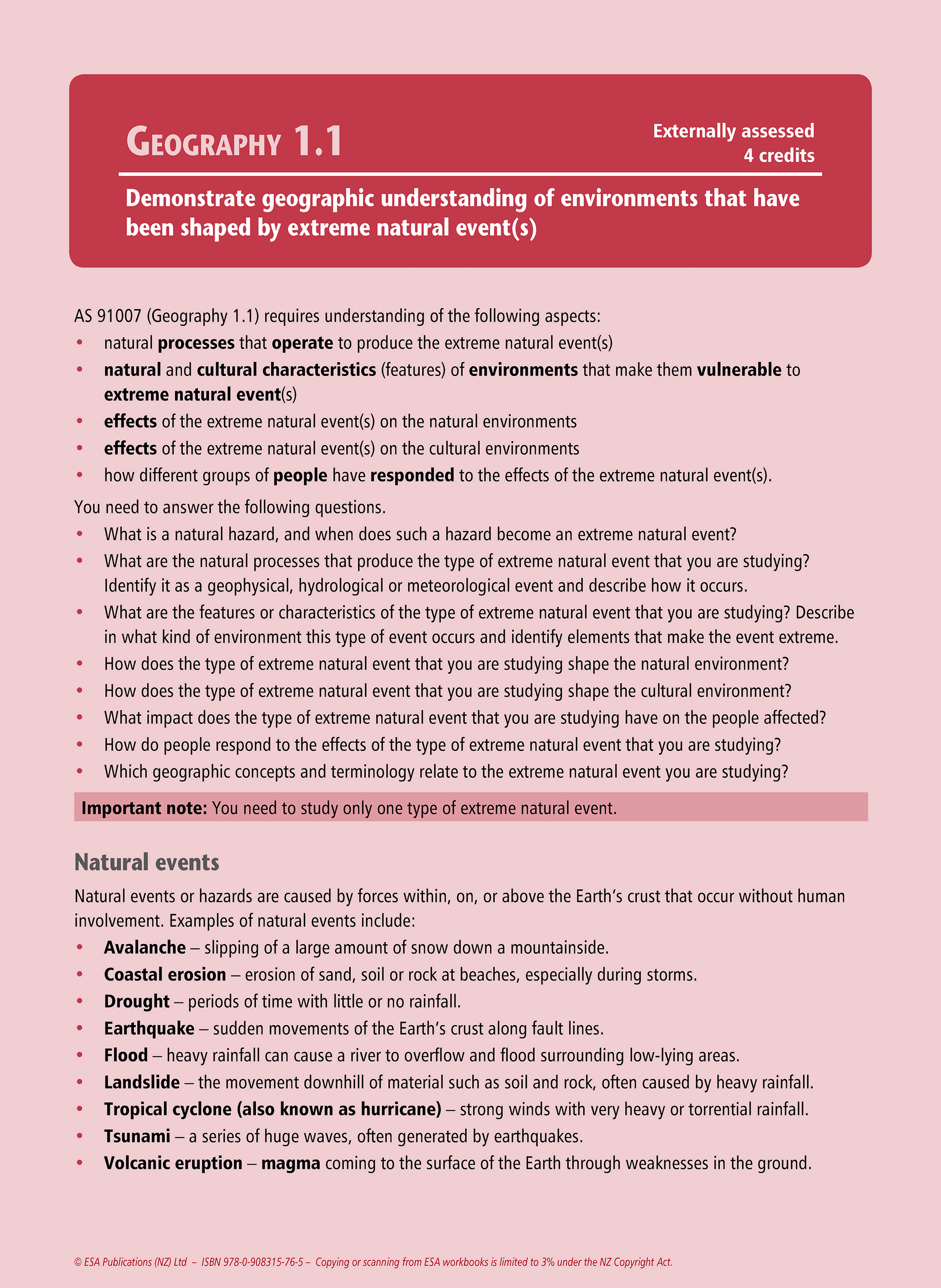Level 1 Extreme Natural Events 1.1 Learning Workbook