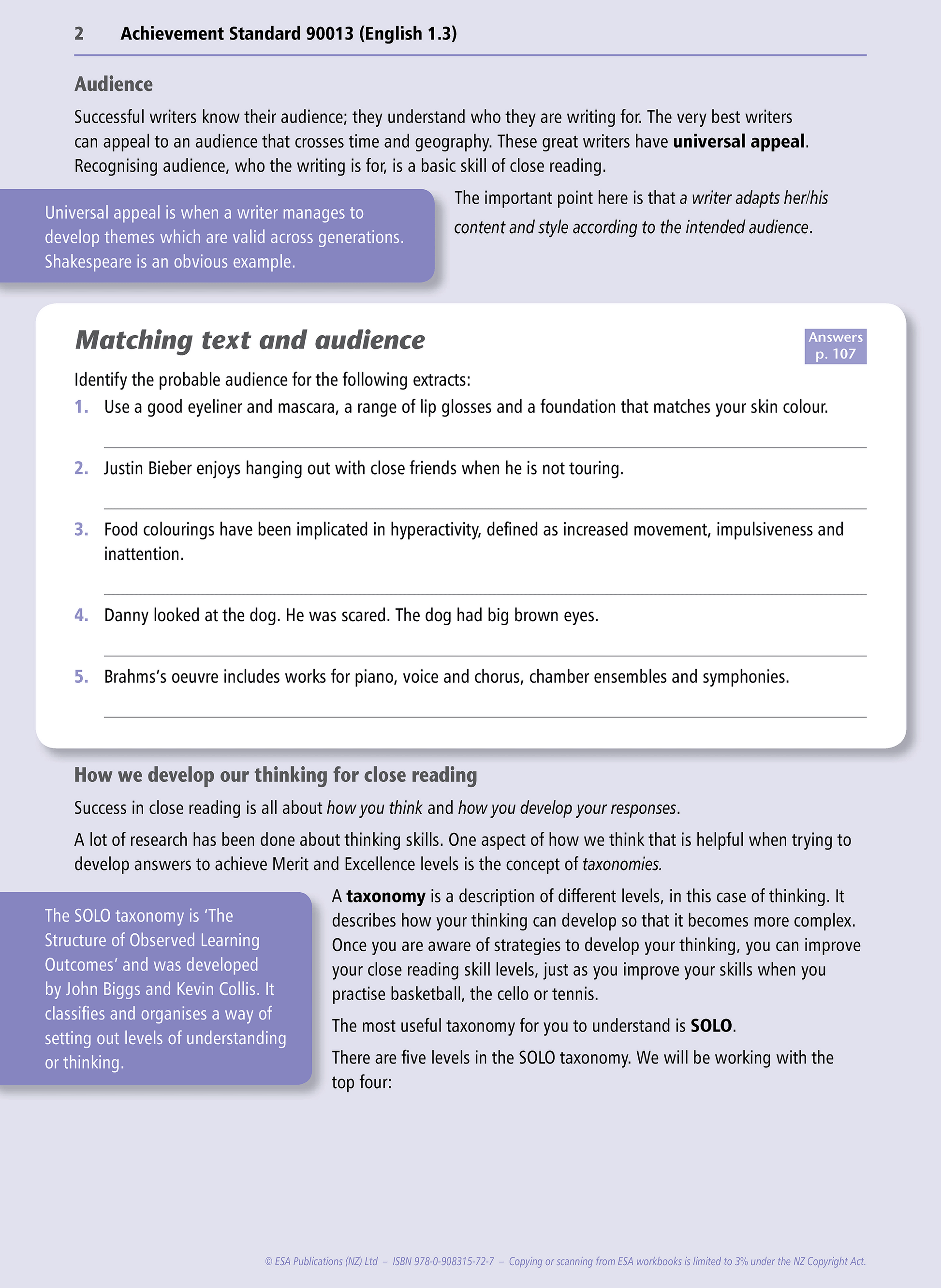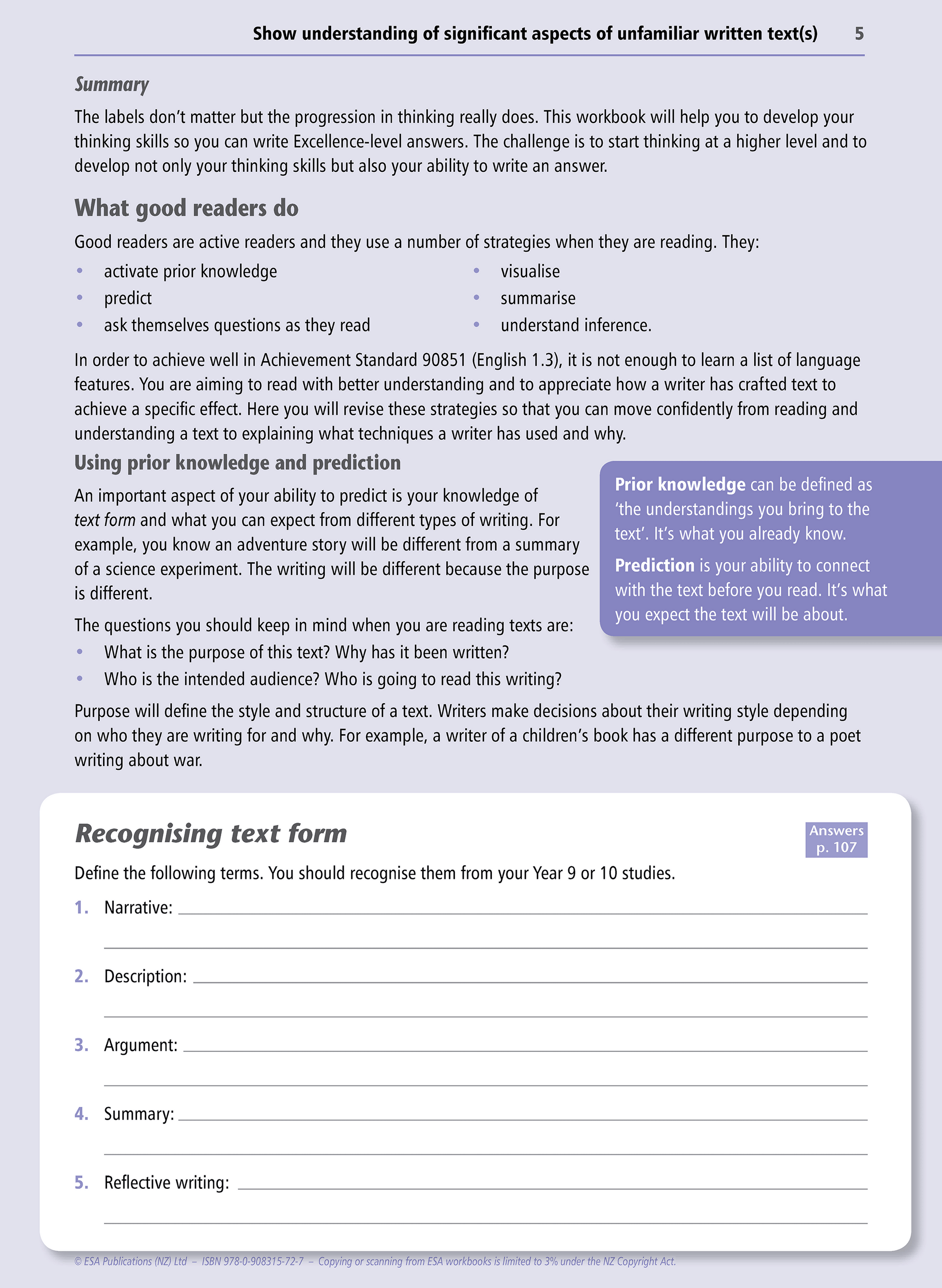 Level 1 Unfamiliar Texts 1.3 Learning Workbook
