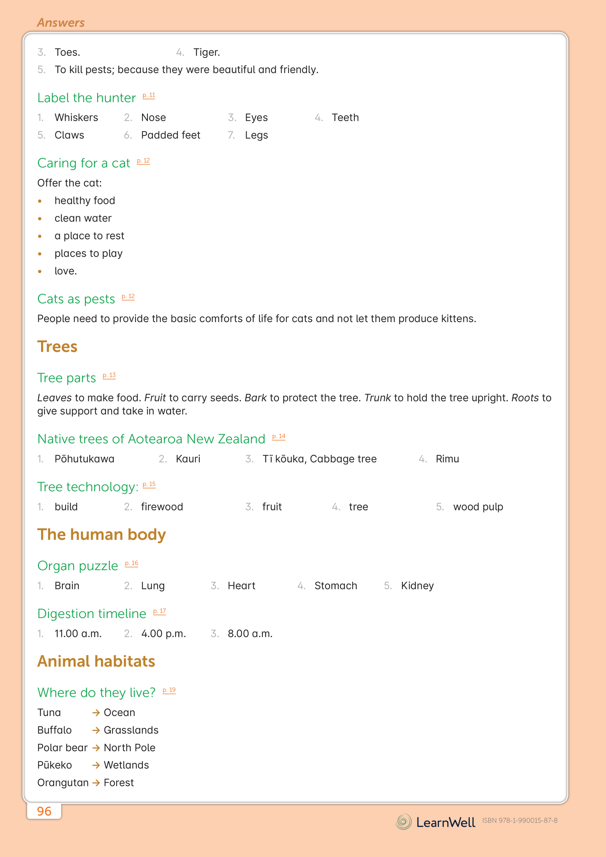 - Answers are provided at the back of the book.